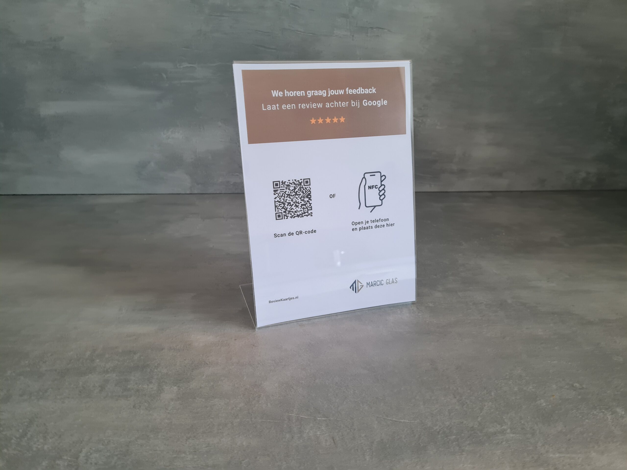 Wat maakt onze Google Review display A5 formaat met QR uniek?