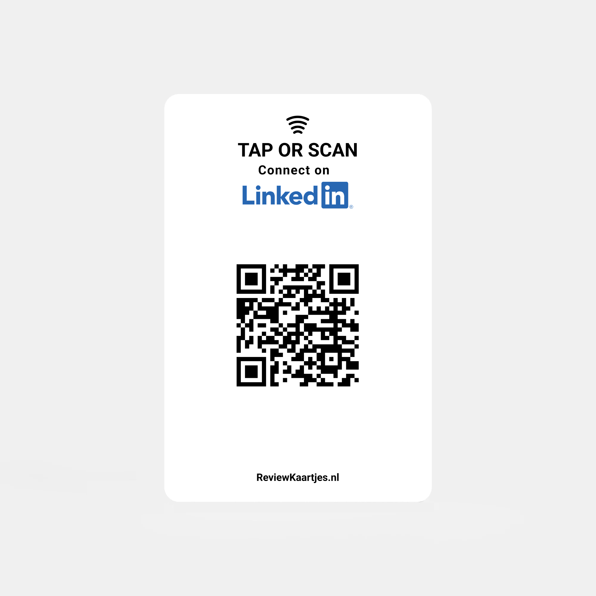 Verzamel razendsnel connecties en verbeter je online reputatie met een LinkedIn visitekaartje voorzien van QR code en NFC technologie. Maak het makkelijk voor je klanten om met je te connecten op LinkedIn. Door simpelweg de QR code te scannen of hun telefoon bij de NFC-chip te houden, kunnen klanten direct uw account volgen/connecten. De link gaat rechtstreeks naar uw LinkedIn account en verloopt nooit. Daarnaast onbeperkt gebruik en geen abonnementskosten.